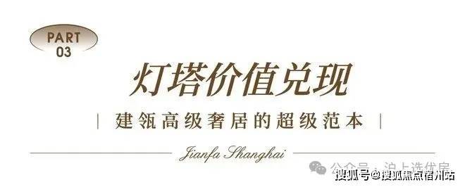 灯塔钜作是建发房产主动选择的一场自我变革,以“灯塔精神”为指引,以“真诚”与“美”为内核,围绕“领先精神”、“客户至上”、“文化传承”、“工艺精湛”四大核心特性,正阔步迈进价值兑现期,一次次以超强兑现力交出一份份超预期答卷:从厦门建发港务·宸启瑞湖,到北京建发·海宸,再到上海建发·海宸,灯塔作品以实景呈现蓝图,以诚意兑现承诺,成就新中式生活峯范。