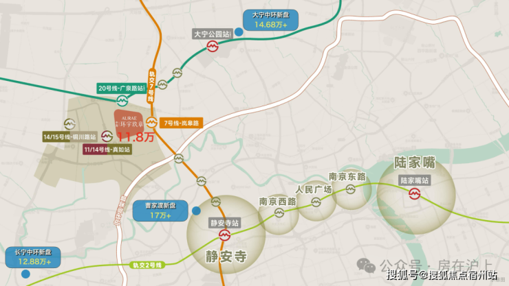 以项目为起点,直线距离在建的20号线广泉路站约400米,距7号线岚皋路站约500米(4站即达静安寺,并可换乘2号线前往多个城市商圈)。