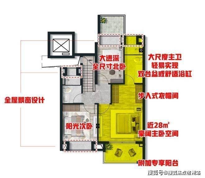 大尺度宽景阳台,宽度达到外框4米2,面积超7平米转角观景落地窗设计,打造舒适休憩体验。