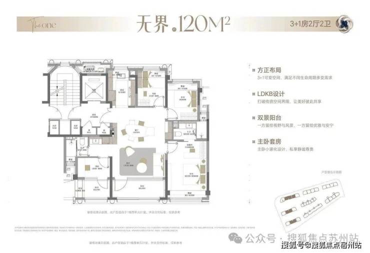 户型方面,起步约120㎡户型,旨在打造更纯粹的居住圈层,整体户型以经典“四叶草”布局,主打阔绰公区,同时附赠双阳台+大面积飘窗,超高实得率!