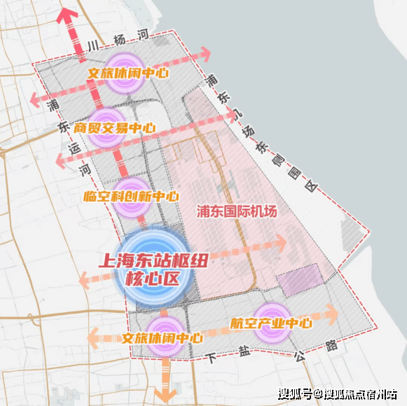 东方枢纽的建设也已经把川沙东部新城区纳入了开发范围。根据十四五规划,东方枢纽由浦东国际机场和铁路上海东站组成,为川杨河、浦东国际机场东侧围区、下盐公路、浦东运河围合的区域,总投资1500亿元,规划面积达155平方公里,我们项目正在其范围中。