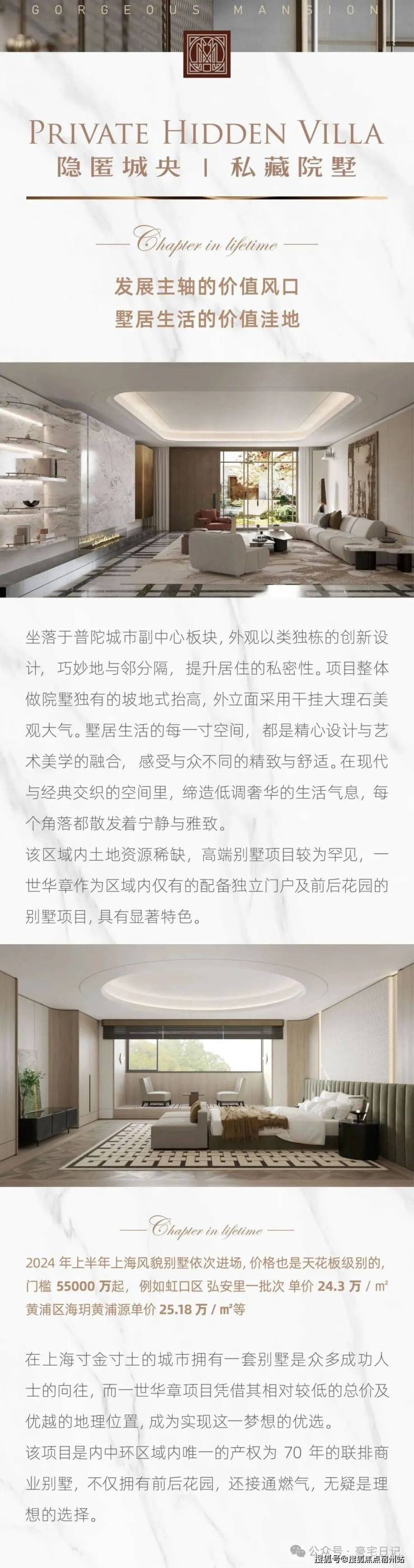 上海中心城区风貌别墅均价已突破30万/㎡(中海恒昌玖里38.5万/㎡,弘安里40万/㎡),本项目为真如副中心仅有的15席法式院墅,占区域同类产品存量不足5%;
