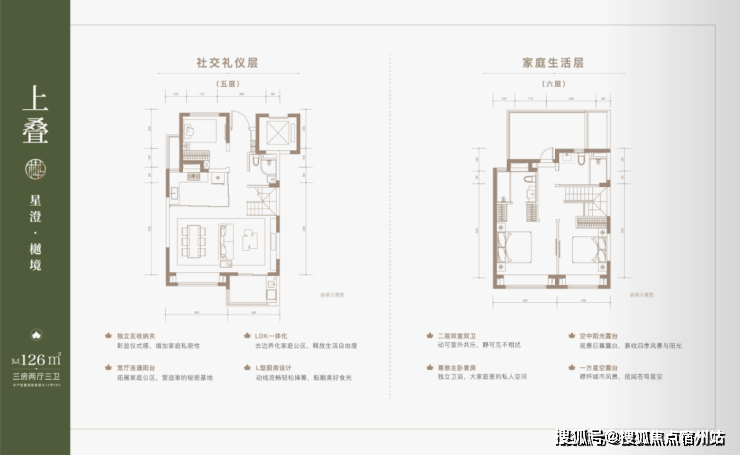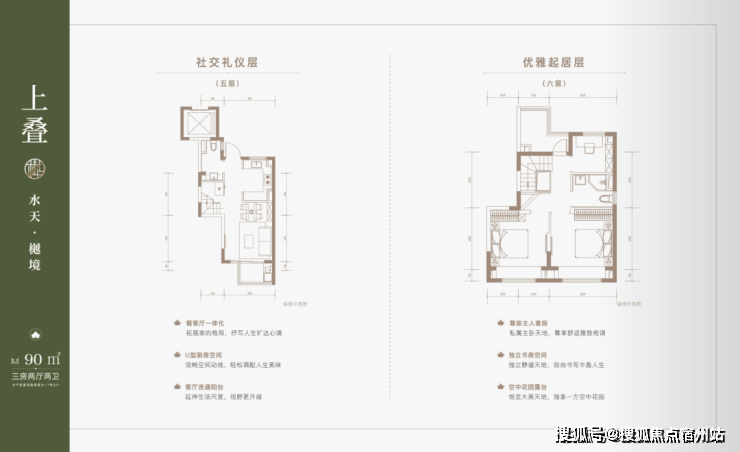 上叠产品都是带有空中花园露台,日常聚餐、烧烤、开party等娱乐活动有大展拳脚的空间,同时客餐厅一体化+U型厨房空间+尊崇主卧套房,户型设计合理,格局方正。