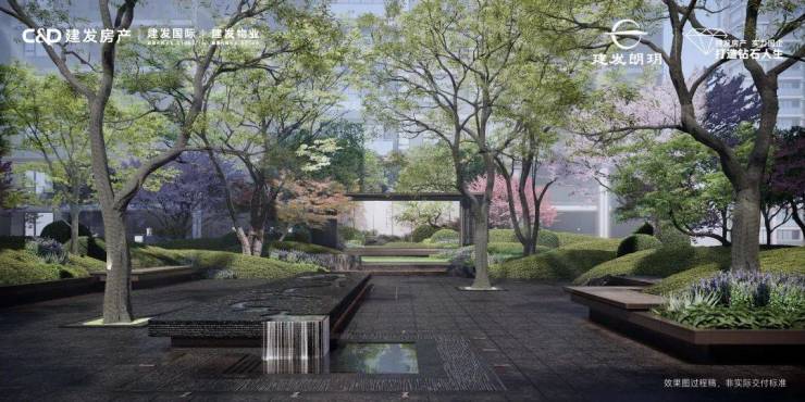 遵循建发中式建筑元素中“儒门”的设计,打造威仪门庭;设计叠水景观及入户青云桥,为业主营造“群贤毕至,平步青云 ”的归家尊崇。