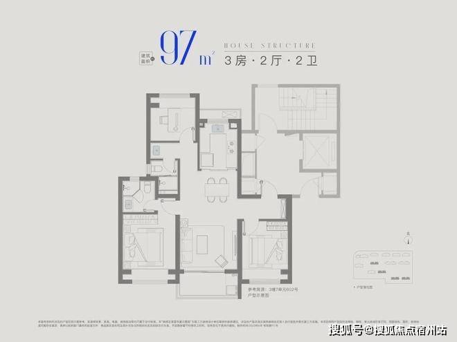 建面约97㎡3房2卫,升级版大3房,入户玄关+主卧套房设计,招商象屿·星耀翠湾售楼处电话☎:400-8266-670✅✅整体私密性更强,空间更为宽敞。