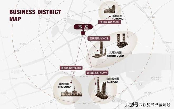 商业配套方面:项目约2公里内,多元繁华构筑封面商业圈:北外滩商圈直线距离约500米,外滩商圈直线距离约1000米,陆家嘴商圈直线距离约1500米,瑞虹商圈直线距离约900米。