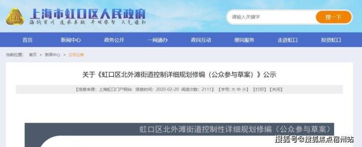 当然,最值得关注的还是北外滩的政策规划:2020年2月20日公示了关于 《虹口区北外滩街道控制详细规划修编(公示参与草案)》,规划要将北外滩建设具有全球资源配置能力和国际竞争力的 顶级中央活动区!