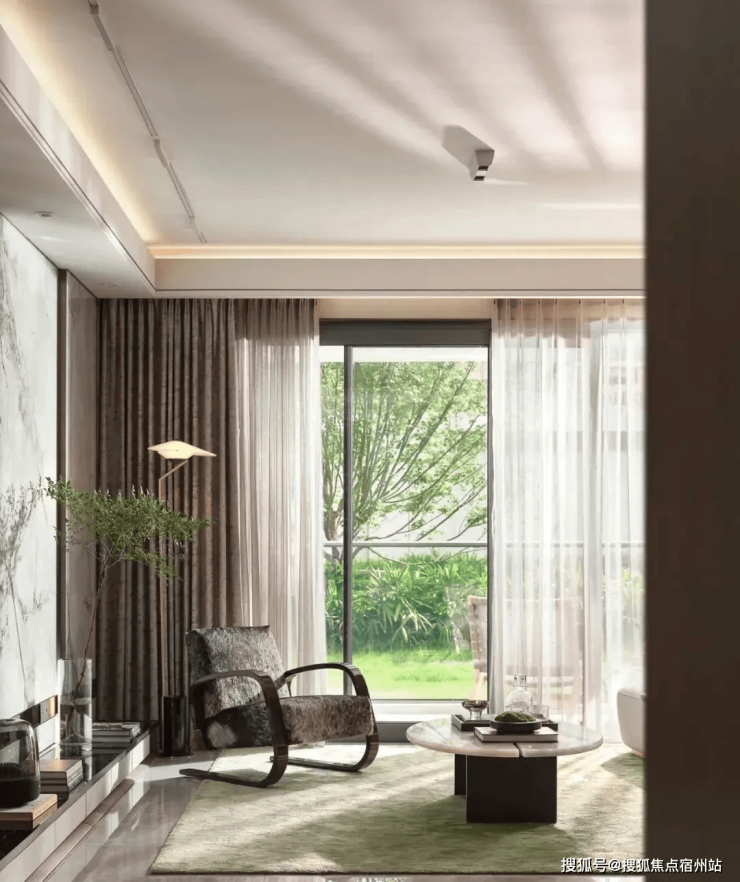 步入社区,首先映入眼帘的是长达约100米的仪制化门堂,以古代仕官车马行院的规制为蓝本,搭配松石景观与水景照壁,营造出“松石守望,礼迎雅仕”的归家仪式感。穿过门堂,“四水归堂”的中庭水院缓缓展开,近1000㎡的中央水系环绕着黑山石、亭台廊榭,流水叠瀑间尽显东方禅意。园林整体借鉴江南四大名园造景手法,以“一园·三心·五悦·九雅”为脉络,划分出碧波归苑、疏林影院、落英雅境等九大主题空间,还原文人雅士焚香、品茗、抚琴的生活场景。其中,“厅堂”区域复刻孔子树下讲学的文化意境,“轩堂”则以金属卷帘与青绿色彩釉玻璃构建品茗听雨的静谧角落,让传统美学在现代社区中焕发新生。