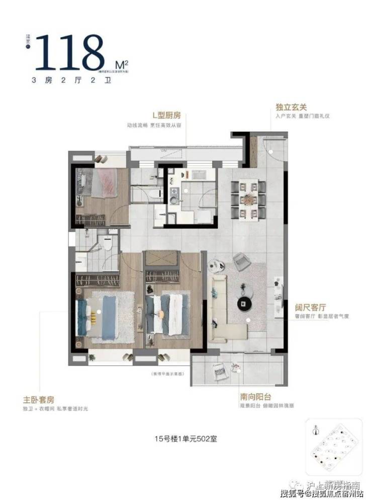 建面约118㎡3房2厅2卫