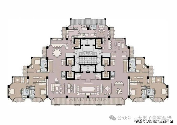 外部设计已经足够令人震撼,内部户型更是壕到无法想象。独特的金字塔设计,仪式感超强。所有住宅单元都尽可能南向,拥有360°采光的同时不浪费一丝一毫的江景。