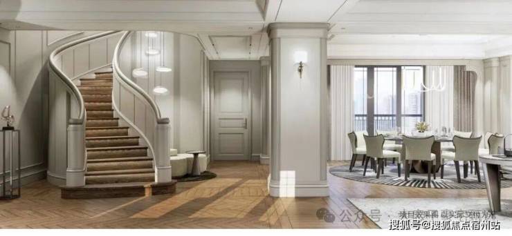 现场的部分工法展示就足够体现项目的“讲究”:全屋超强喷淋灭火装置,360度无死角,防火安全保障;室内旋转楼梯的木材来自东南亚柚木;配置豪华双开实木门,进门大空间玄关,甚至屋内还有安全屋。