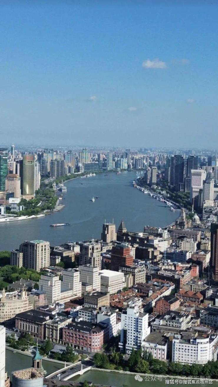 480米的浦西第一高楼以及两座分别高达380米和320米的超高层写字楼鸟瞰浦江。