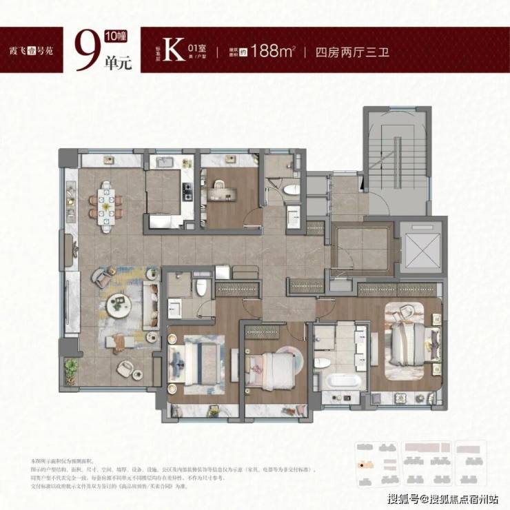 项目推售建面约100-114-121㎡3房,建面约141-182-188㎡4房