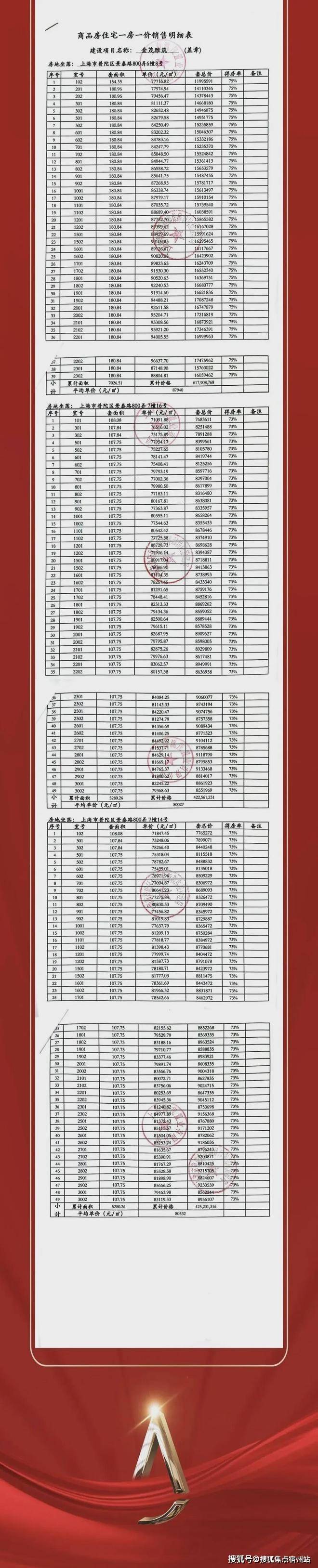 普陀金茂府一房一价表: