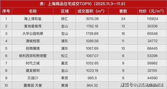 其中,徐汇区长桥板块的海上清和玺表现最为突出,上周网签24套,成交面积3015.08平方米,网签均价115924元/平方米。该项目于10月24日开盘,推出161套建面约112-120平方米房源。