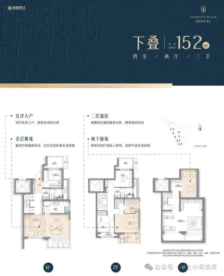 此外, 项目还推出了建面约146-152㎡滨水叠加,同样进行了空间革新,户型图如下↓