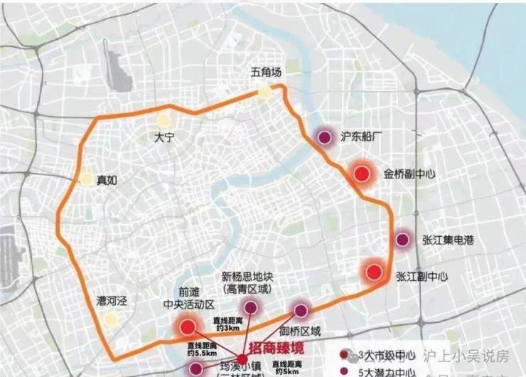 而以前滩、世博为中心,画三个直线约5-7km的生活圈,招商臻境是唯一一个约600万起的新房,而其他的选择,总价起码千万起。