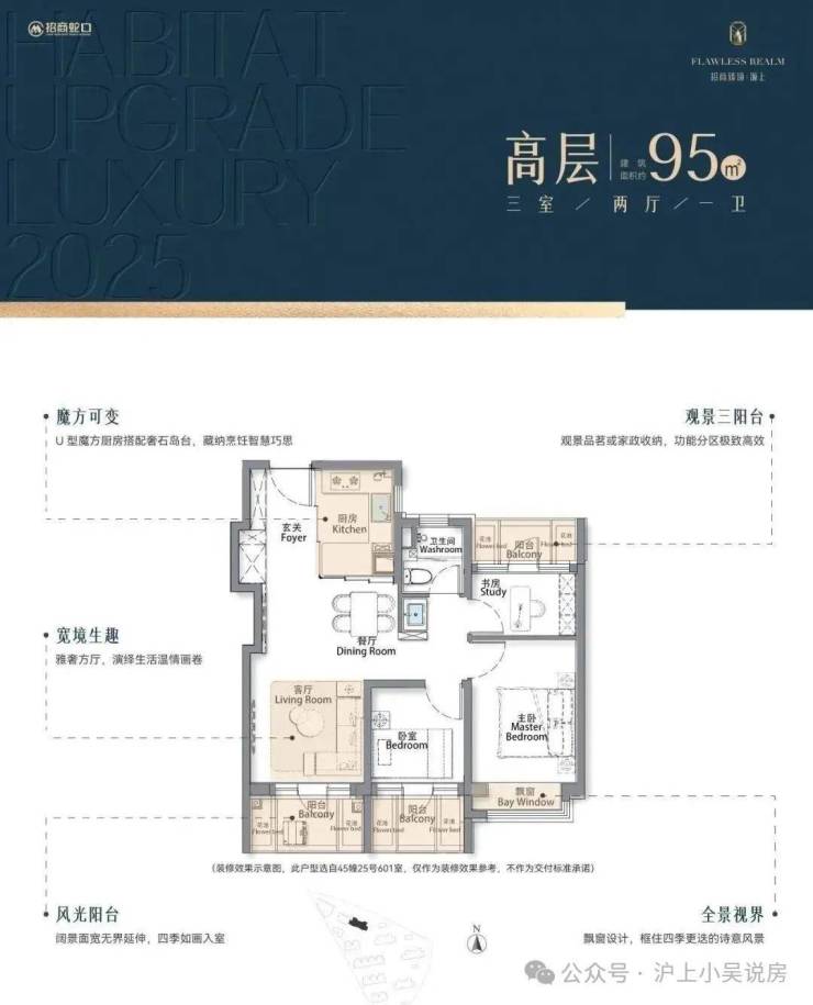 招商臻境丨源上,在原有基础上再度重磅升级,打造出了整个浦东罕见的 三阳台真三房,在实用面积以及收纳功能方面进行了两大突破!