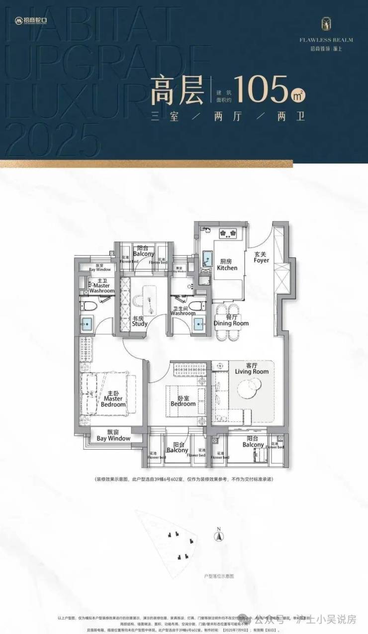 首先,是实用面积的跃升。建面约105㎡户型的三个阳台只算一半面积,花池不算面积,主卧自带非承重结构的飘窗, 折算下来的空间是实打实的,远超市面上同面积段其他产品!