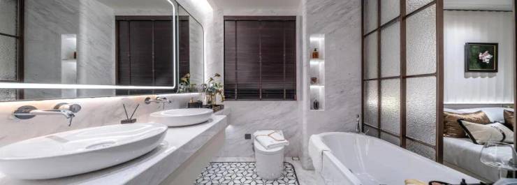 结合上海高端酒店的设计基因及经典海派建筑元素,为业主打造出海派摩登生活场景。