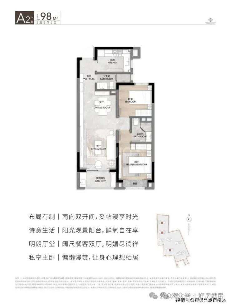 建面约98㎡2房2厅2卫▼
