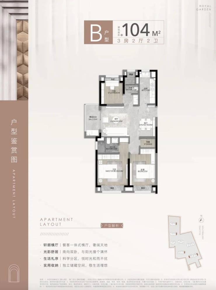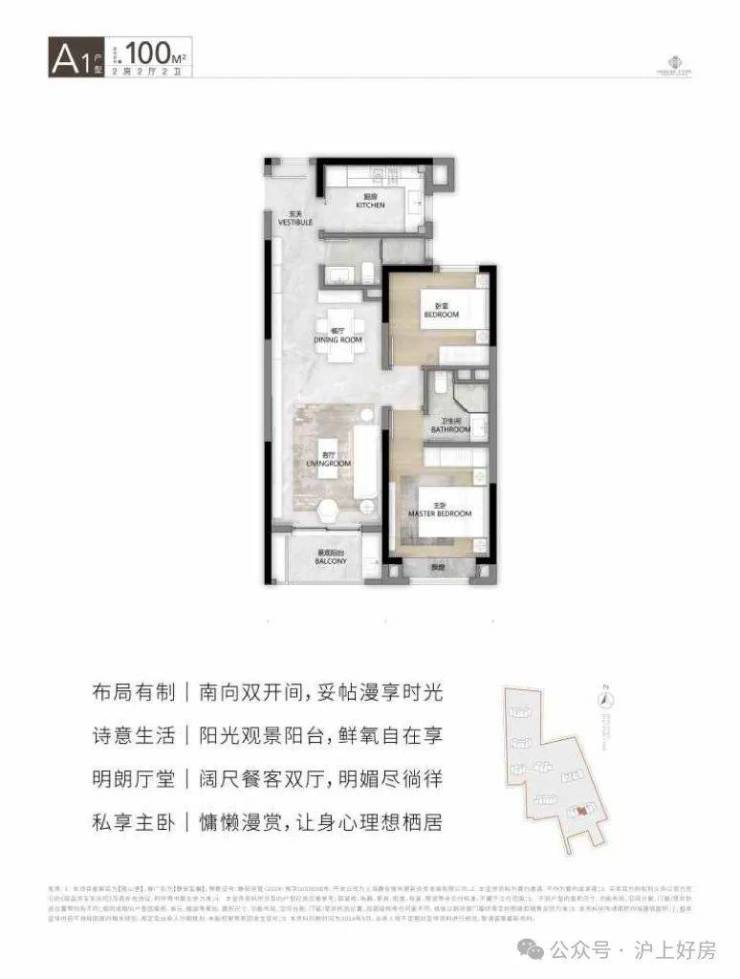 在售面积:94㎡/98㎡/100㎡2房2厅2卫