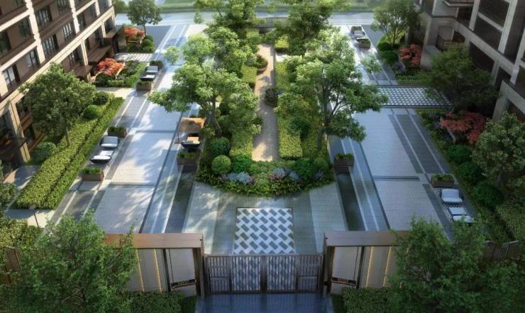 整个景观设计,按照“翡光礼境”的概念,不是硬生生地塞进社区中,而是做到了与水景、雕塑、绿植一起,体现未来住区的海派生活气质。