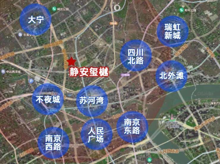 项目直线距苏州河约1.5公里,直线距黄浦江约3公里。3公里范围内,能够享受苏河湾、人民广场、外滩、北外滩、大宁等浦西九大核心商圈的资源,生活便捷程度显而易见。
