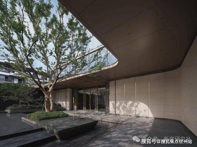在单元入口和社区会客厅入口的立面上,华润虹桥润璟售楼处电话 400-8266-670✅✅都通过将弧形元素与米黄色石材和香槟金色金属构建相结合,在视觉上呈现出一种温暖而优雅的气质。