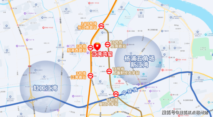 项目与18号线殷高路站直线距离900米,这条轨交被誉为“换乘王”,1站直达财大,2站复旦,7站杨浦滨江,9站陆家嘴滨江……