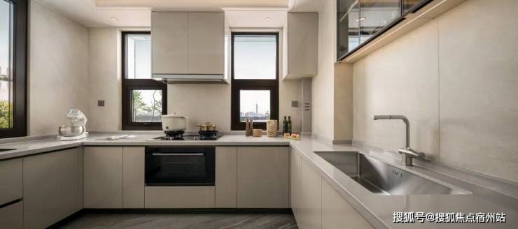 项目厨房使用 方太的灶蒸烤一体机、吸油烟机三件套交付,更有 弗兰卡的水槽、龙头,定制橱柜,诺贝尔的地面、墙面,石英石台面等 。