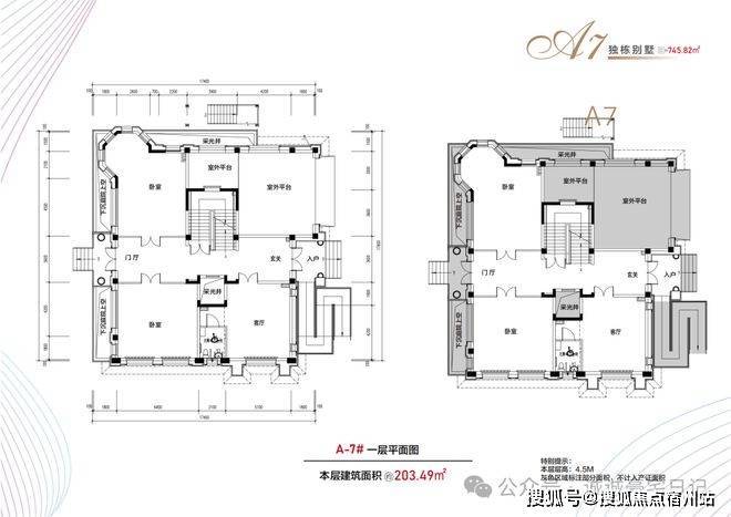 布局:地上三层(4.5米层高)+地下一层(6.2米层高)+900㎡花园