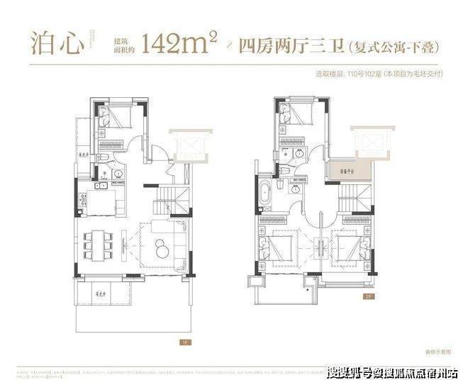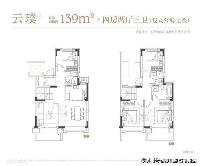 叠墅:叠墅一共四层,分为上/下叠,✅✅大华梧桐院售楼处电话:400 - 8824 - 258✅✅上叠建筑面积约139㎡,下叠建筑面积约142㎡。
