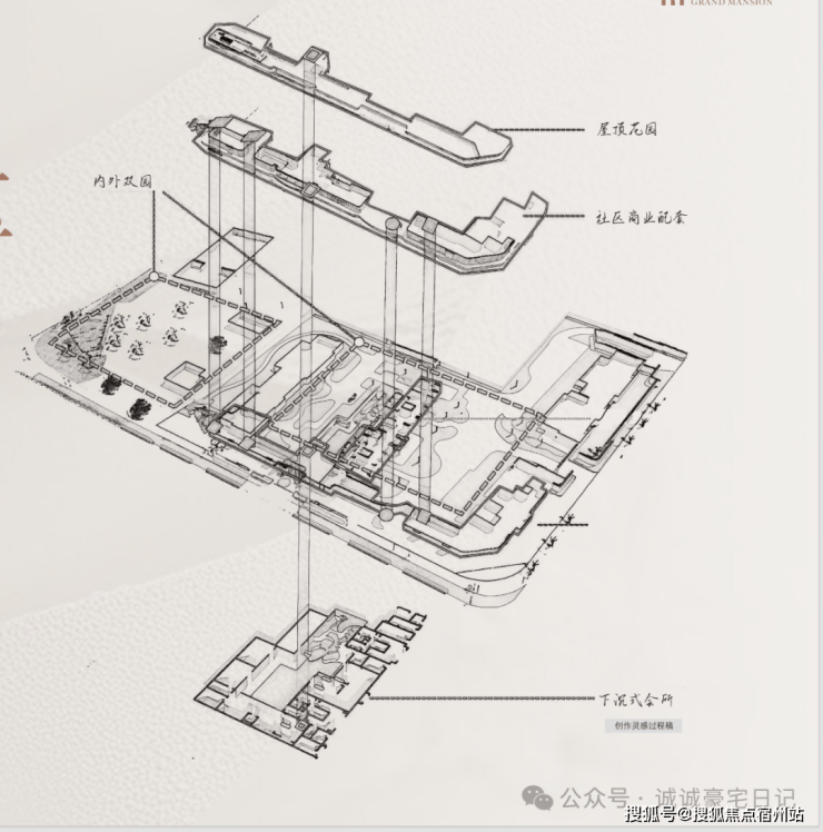 地上是7重归家路线,从口袋公园到商业烟火,穿越门厅后经过三重社区景观,最后高定入户,层层递进的礼序归家,开启一场穿越风景的归家之旅。地下是4重,从车库门头到车库玄关到入户光厅再到入户大堂,让平凡的日常场景成为尊崇身份的暗语。