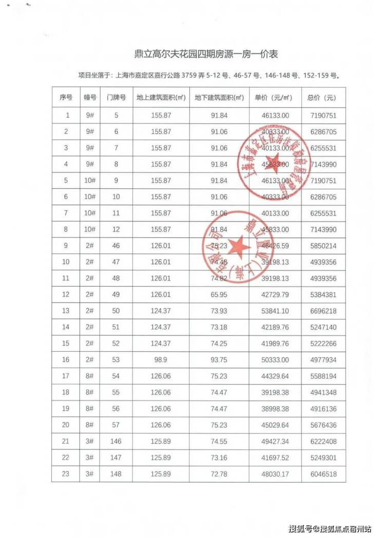 最新一房一价表: