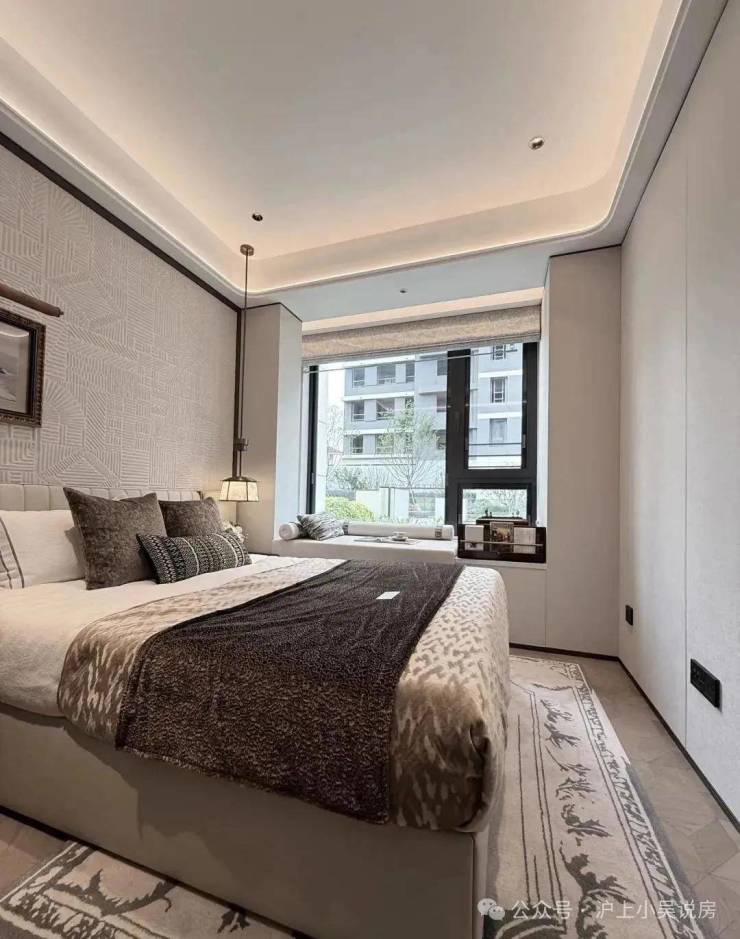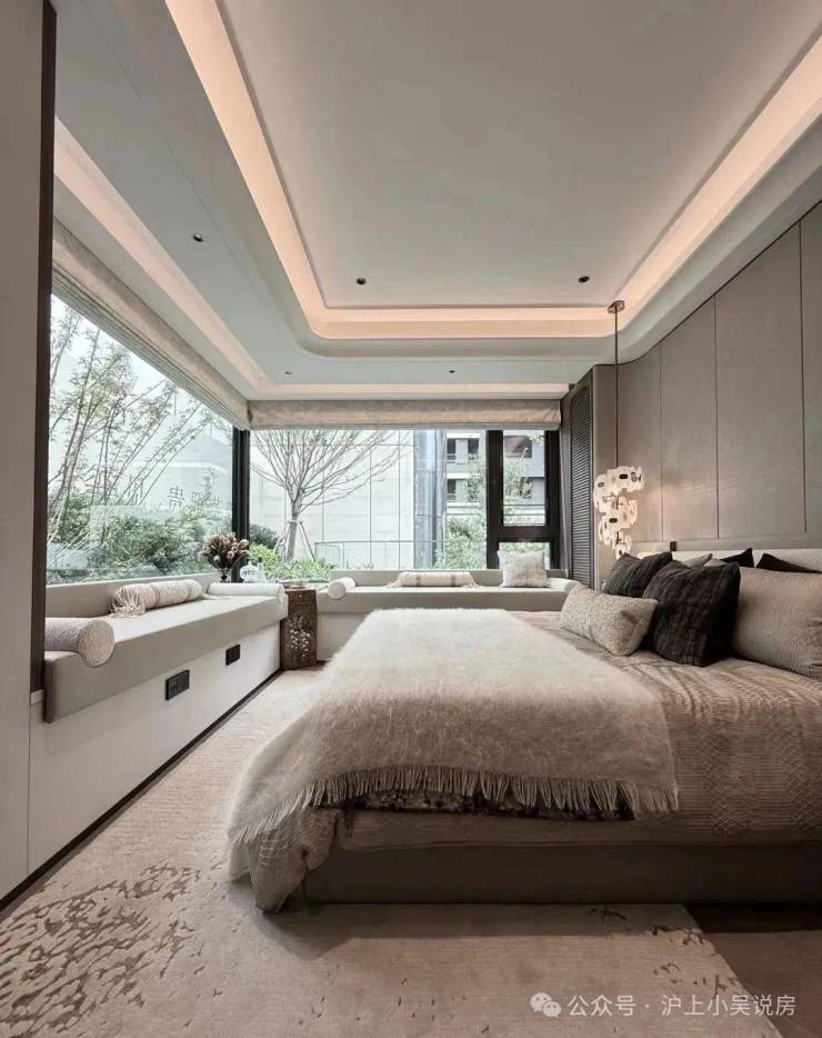 电视背景墙采用卡慕白的石材+皮革造型,弧形吊顶,相当讲究,连空调出风口的形状都打造为海上·清和玺logo山茶花的形状~~三大件为大金(或同等档次)中央空调和地暖,新风系统为百朗(或同等档次),南向阔景阳台,采光视野一级棒!
