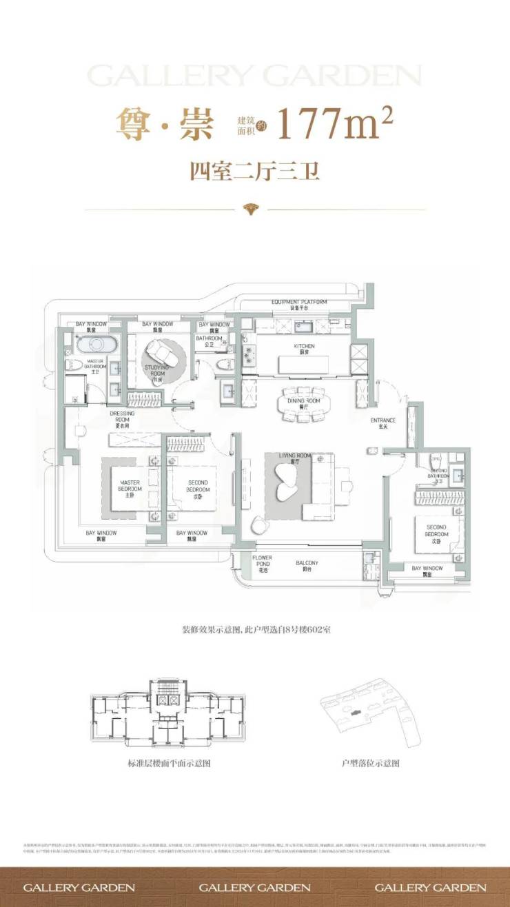 建面约177㎡户型是本批次的重点户型,总价约2300-2500万级, 改善一步到位,后续再无!阔朗的 四开间朝南设计+双套房设计,保证不同家庭成员起居的私密性。