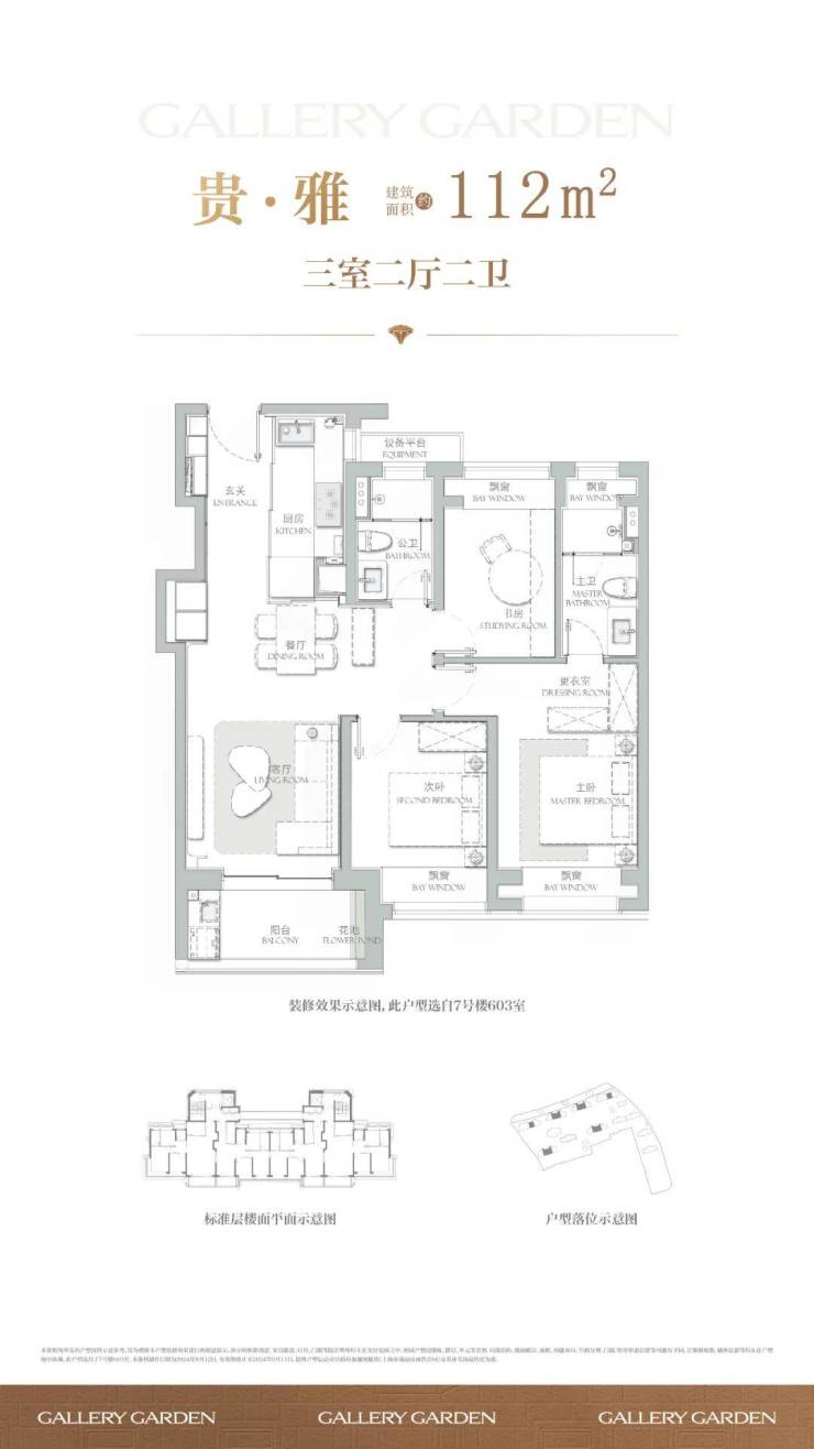 建面约112平三房为标准的三开间户型,设计上将传统的过道改为餐厅空间,将公共区域做大了,也减少了浪费;S墙设计将冰箱空间外移,厨房空间更宽裕。