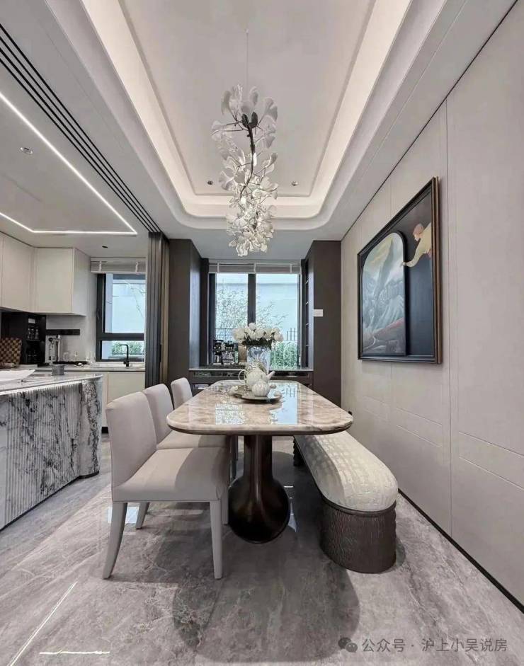 【海上·清和玺】希望业主的每一次归家,都能有属于自己的社交空间。整个前厅的接待空间不是一个过渡空间,而是一个真正为归家营造惬意分享的生活场。