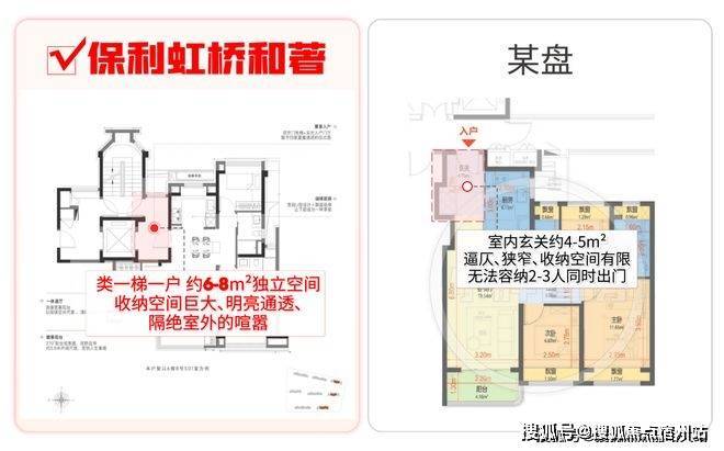 相比其他百平米3房玄关的逼仄、收纳空间少的问题,保利虹桥和著本次所有户型都做到了类一梯一户,享全明独立电梯厅: