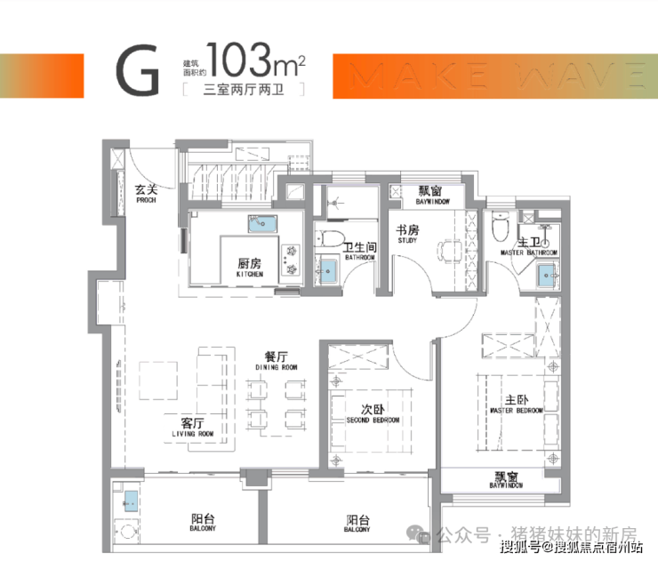 “南向双阳台+南北双飘窗”,构筑真3房户型!