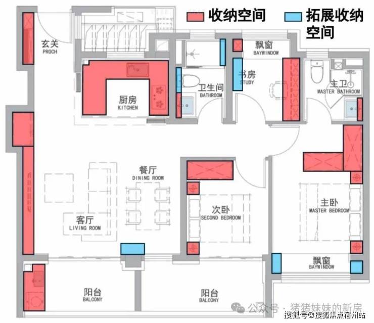 而招商·时代潮派|东屿此次建面约91㎡户型,就做出来了比市面百平户型更好的的“南向双阳台+南北双飘窗”设计。