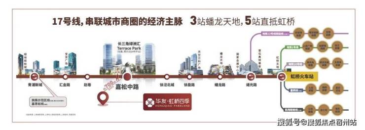 对刚需来说,地铁一直是至关重要的因素。华发虹桥四季直线紧邻17号线嘉松中路站,直距仅约700米,是目前整个大虹桥区域距离地铁更近的通勤神盘。可以无缝换乘2/10/13/嘉闵线(在建) /机场联络线(在建) ,能级毋庸置疑。