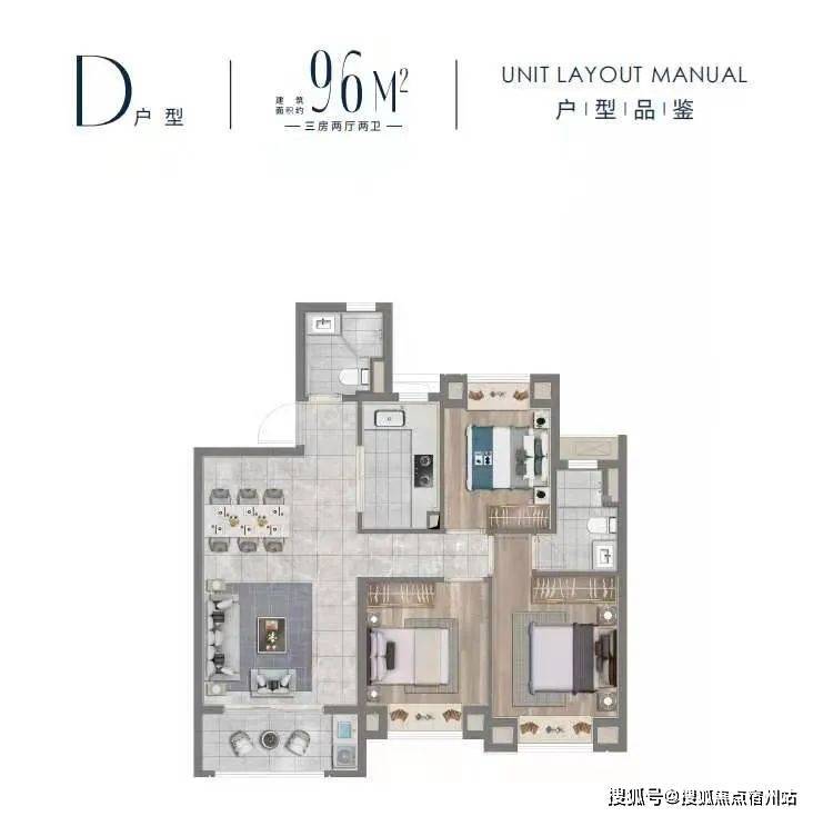 实话讲现在的户型都大同小异,户型图一贴您自己也能看得懂。但项目这个建面约97㎡3房只有去现场体会,才知道它的好。