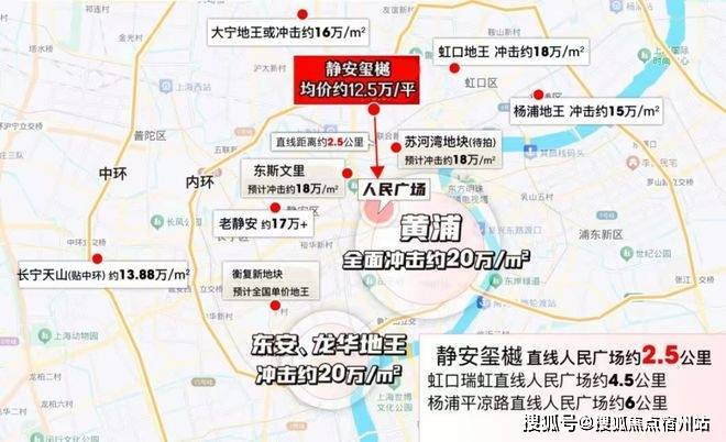 静安玺樾在上海中轴线之上,直线距离人民广场约2.5公里,与 静安寺相距人广距离类似。比虹口、杨浦等区域更靠近传统市中心,在同价位段新房中 位置更出众