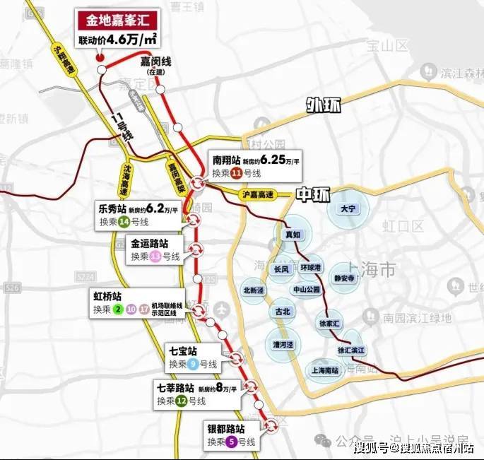金地嘉峯汇直线距离11号线约500米,直线距离嘉闵线(在建中)约200米,8 站直达大虹桥,是当下400万级为数不多的双轨交盘。
