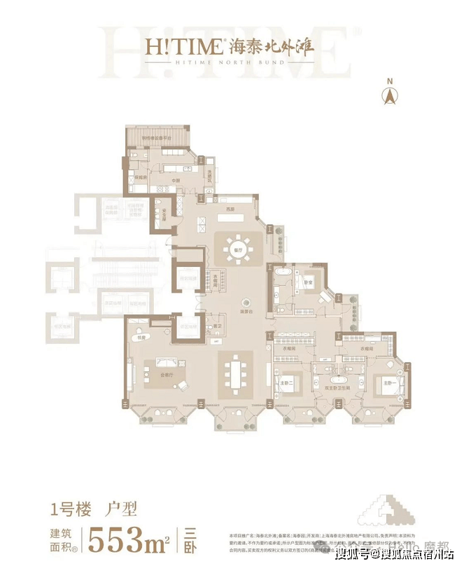 项目南侧一栋住宅户型呈金字塔造型,四间套房,超大客餐厅,充分利用南向面宽,360°采光不浪费一丝一毫江景。每个房间都有超大阳台,阳台外设置阔绰花池。南侧塔楼顶部设计了一座停机坪,这是上海首个也是目前唯一设计顶楼停机坪的住宅。北外滩将按照“最高标准、最好水平”的总体要求,打造以“世界级会客厅”和“具有全球影响力的世界级滨水区”。