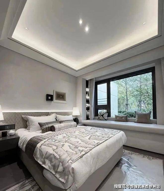 主卧转角落地窗+飘窗,也算是非常少见的了。净面宽约3.6m,不算进门的衣柜,进深大约5.7m左右。根据测算,可以放置宽约2m的床+2个床头柜(宽度约45cm/个)是可以的。
