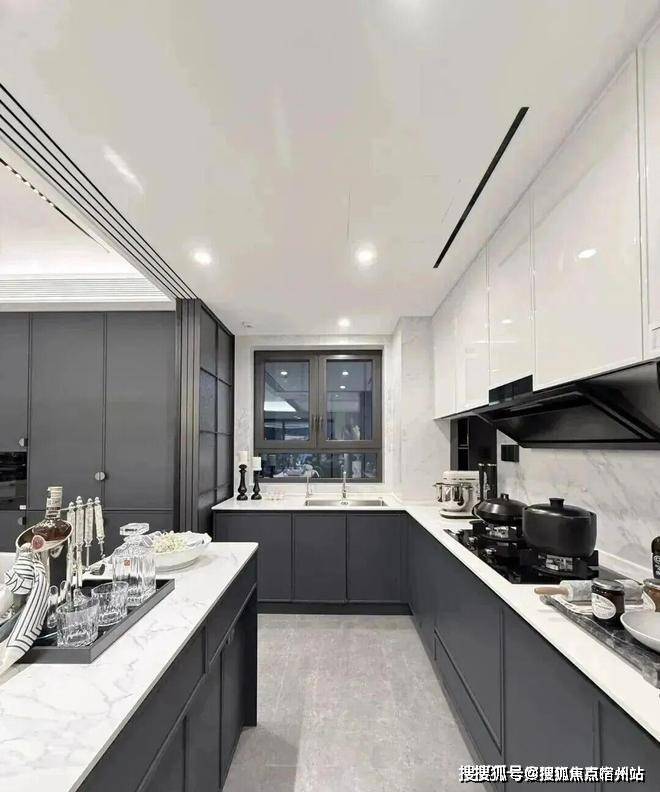 比如,厨房配了珍珠白吊柜、三组抽屉式拉篮合理搭配,调料架收纳、大容量踢脚抽、清洁用品收纳区,米面粮油、碗碟刀叉都可完美隐身。