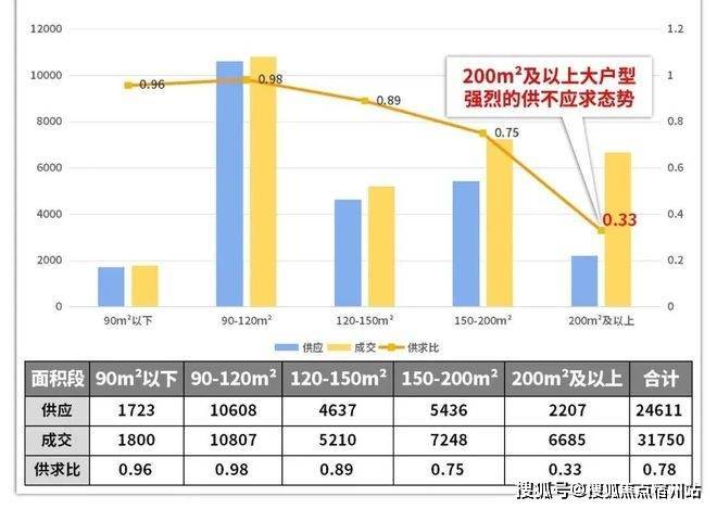 特别是200㎡及以上的大户型,供求比低至0.33,呈现出明显的供不应求态势!
